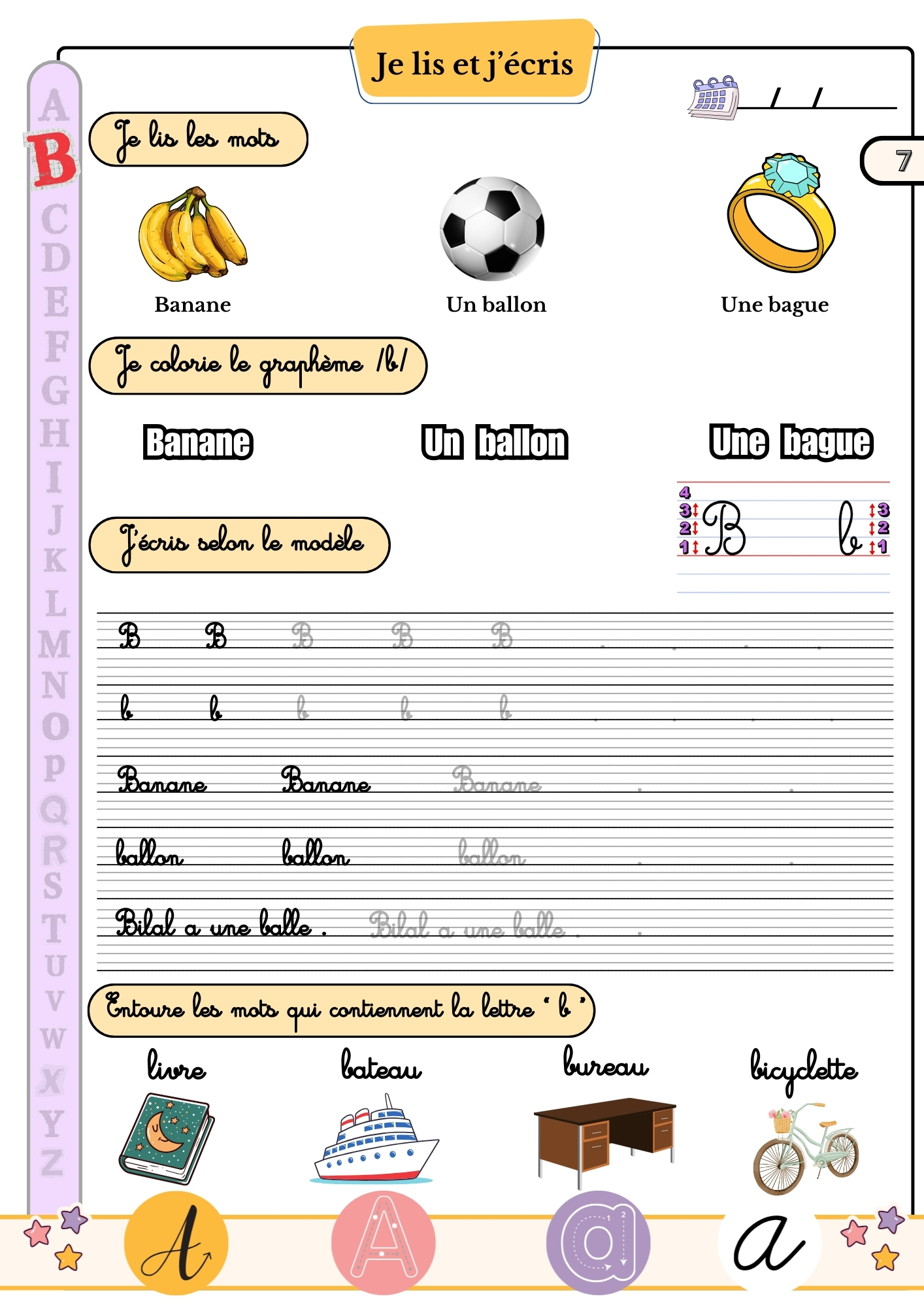 Pour accompagner votre enfant dans l’apprentissage de toutes les lettres de l’alphabet, nous vous proposons un cahier pédagogique complet à télécharger gratuitement.