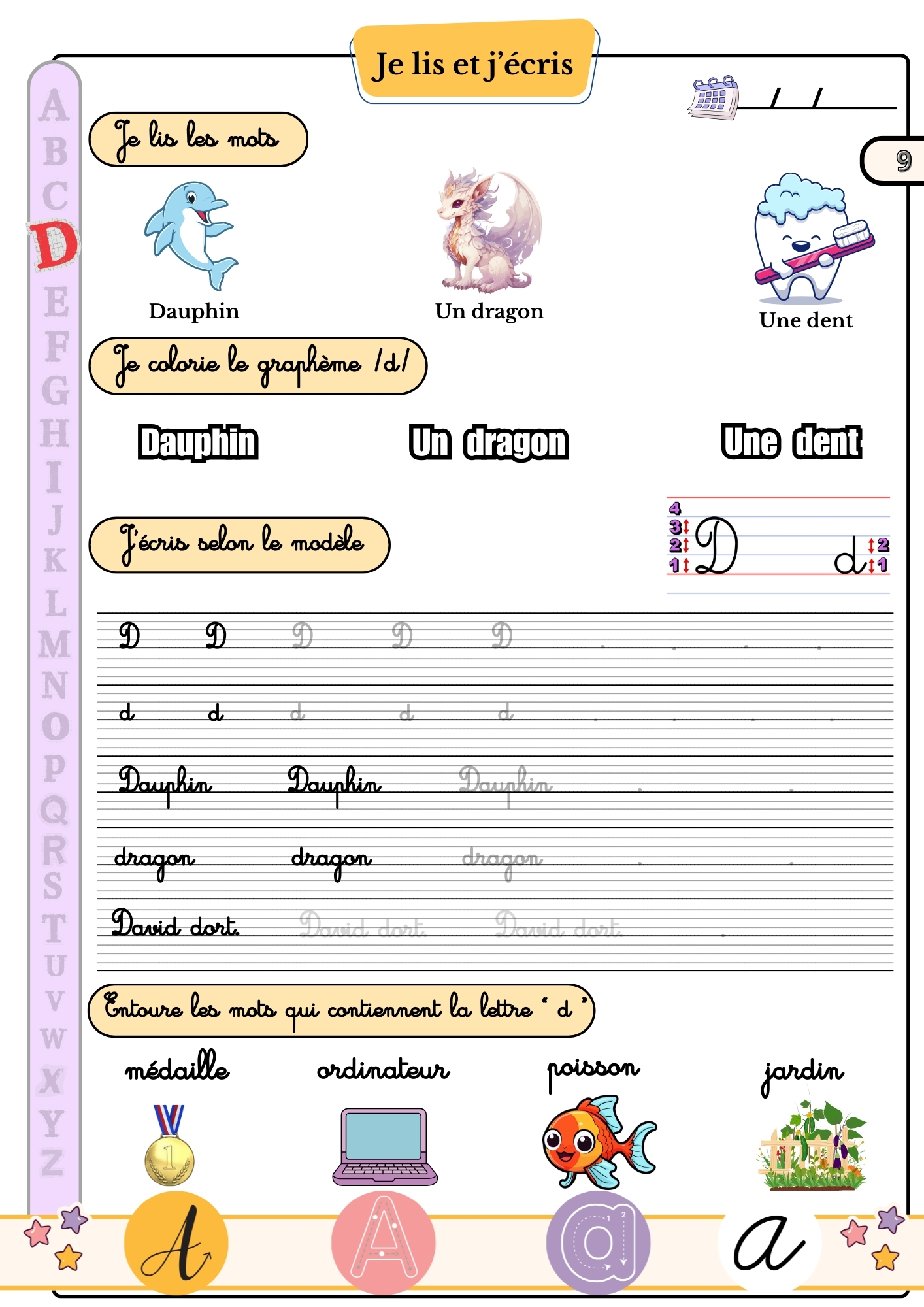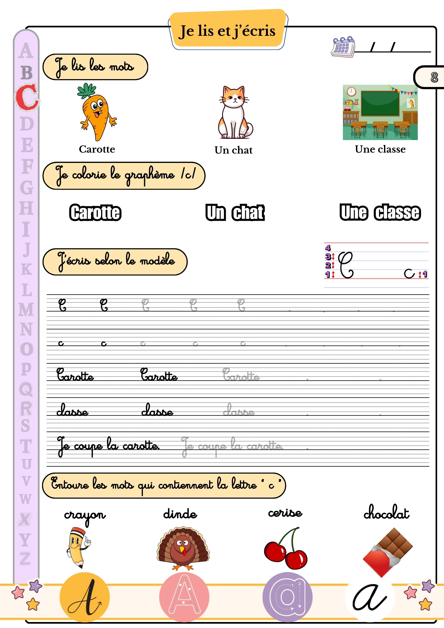 Des fiches d’écriture pour chaque lettre (majuscules et minuscules)